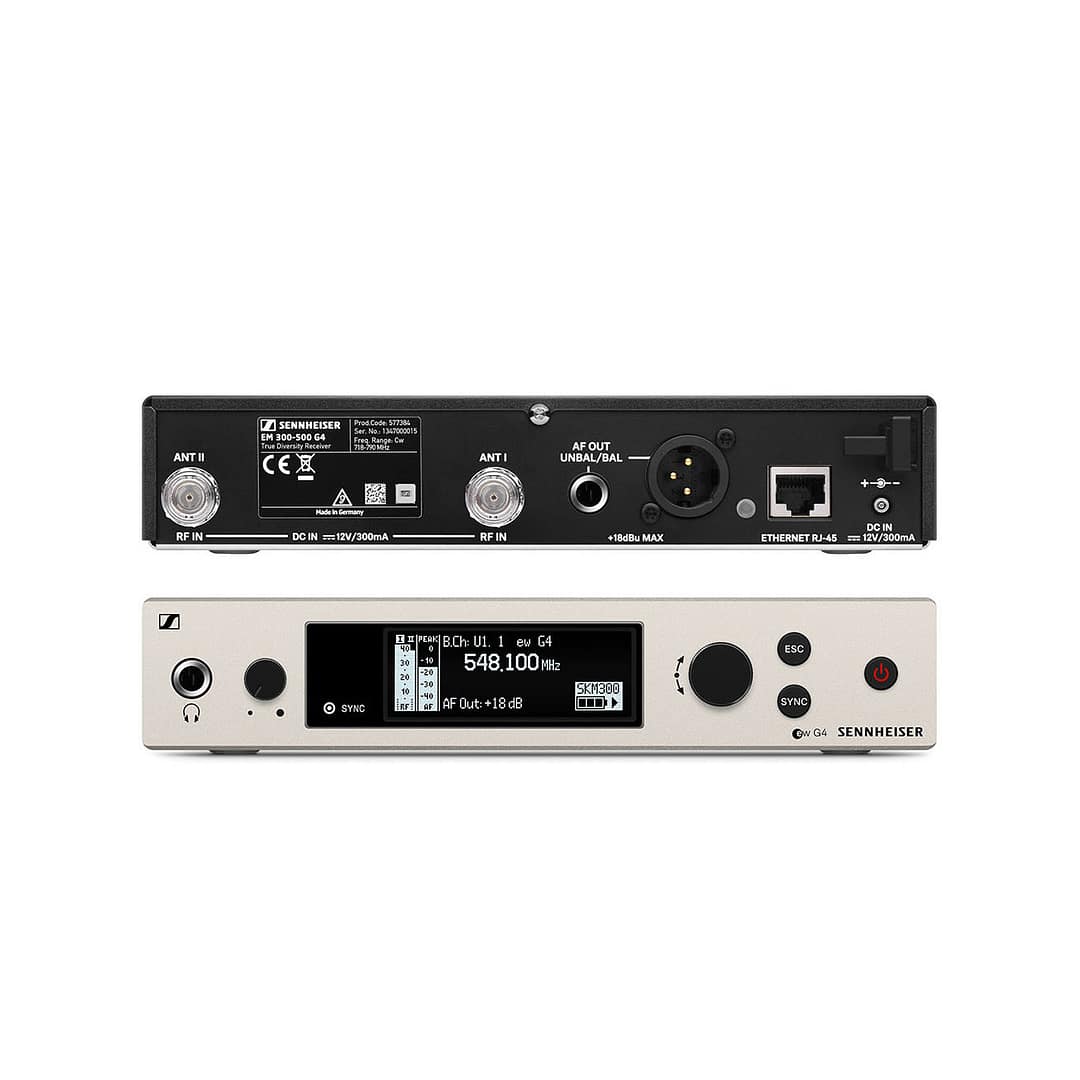 - Широкий радиус действия — 100 метров, благодаря которому Sennheiser EM 300-500 G4-AW+ можно использовать на различных рабочих площадках включая открытые сцены, крупные концертные залы.